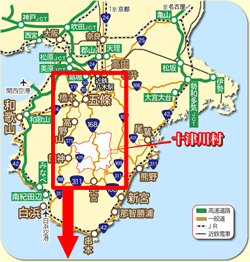高速道路から 亀山→紀勢大内山→十津川村(紀伊半島マップ右側沿い)